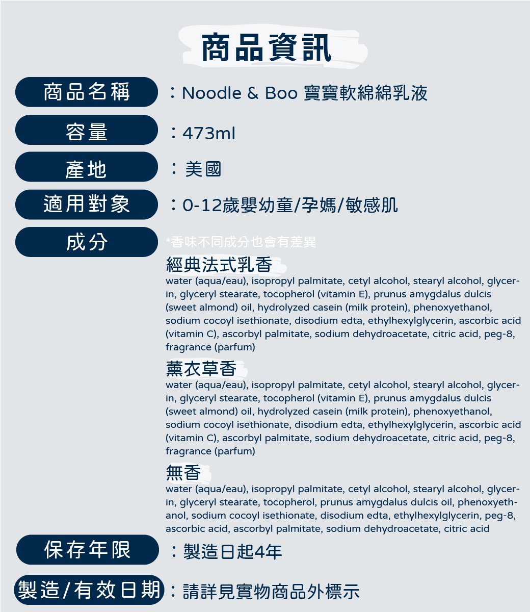 * 富含甜杏仁油、牛奶蛋白、維他命B & E 等保濕成份