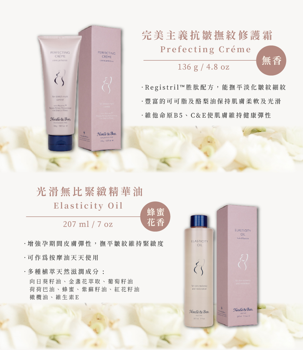 完美主義撫紋修護霜、光滑無比緊緻精華油 與Noodle & Boo 新生寶寶體驗組 寶寶軟綿綿乳液 & 二合一洗髮沐浴乳
